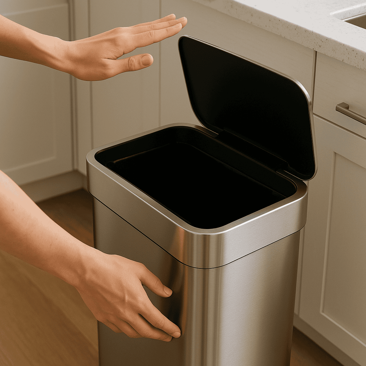 Revolutionary smart trash can with voice and motion sensor technology that transforms kitchen cleanup. Features 58-liter capacity, fingerprint-resistant stainle